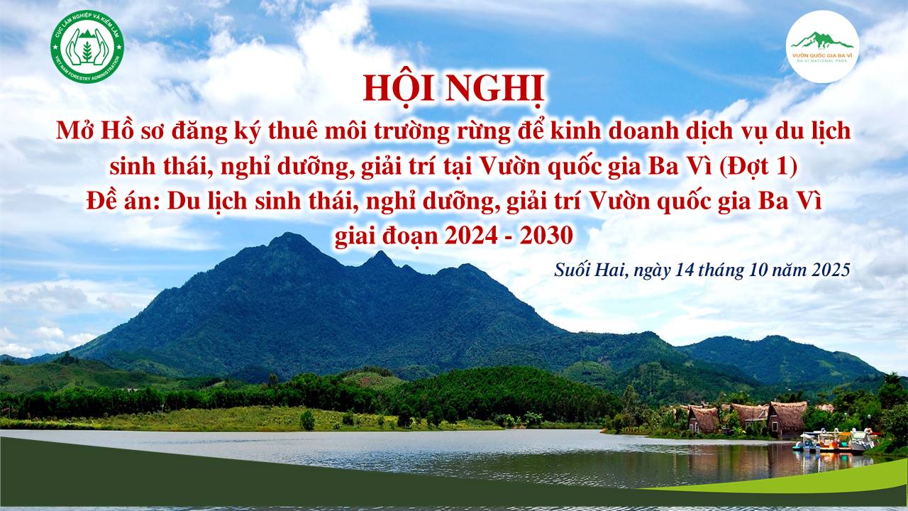 Vườn quốc gia Ba Vì (Vườn) đã ban hành Quyết định số 165/QĐ-VBV-KH,TC ngày 22/8/2025 về việc phê duyệt Hồ sơ kỹ thuật lựa chọn tổ chức, cá nhân thuê môi trường rừng (Đợt 1) và Thông báo số 255/TB-VBV-KH,TC ngày 25/8/2025 về việc cho thuê môi trường rừng để kinh doanh dịch vụ du lịch sinh thái, nghỉ dưỡng, giải trí tại Vườn quốc gia Ba Vì (Đợt 1). Thông báo đã được thông tin rộng rãi, đăng tải trên trang thông tin điện tử của Cục Lâm nghiệp và Kiểm lâm, Vườn quốc gia Ba Vì và niêm yết công khai tại Trụ sở Văn phòng Vườn. Thời gian Vườn nhận Hồ sơ đăng ký từ ngày 25/8/2025 đến trước 09 giờ 00 phút ngày 14/10/2025.