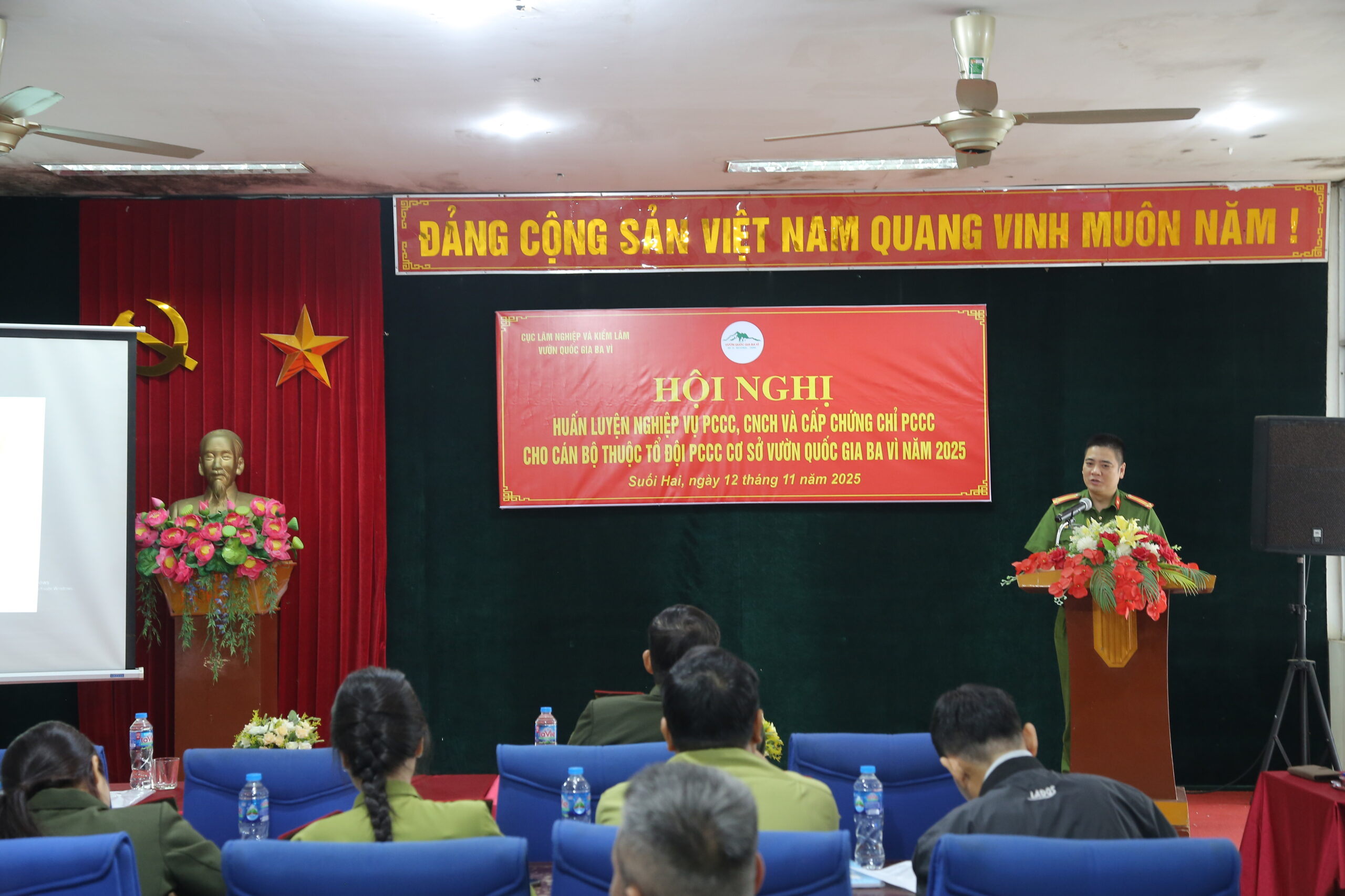 VƯỜN QUỐC GIA BA VÌ TỔ CHỨC HỘI NGHỊ HUẤN LUYỆN NGHIỆP VỤ PCCC, CỨU NẠN CỨU HỘ VÀ CẤP CHỨNG CHỈ PCCC CHO CÁN BỘ THUỘC TỔ ĐỘI PCCC CƠ SỞ VƯỜN QUỐC GIA BA VÌ NĂM 2025